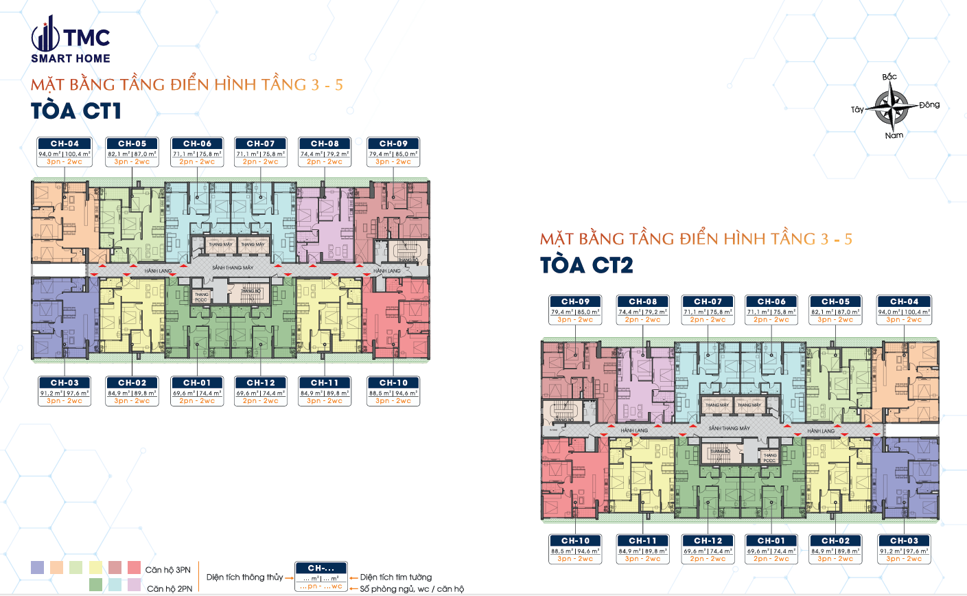 - Diện tích căn hộ: Đa dạng từ 60m² – 120m²