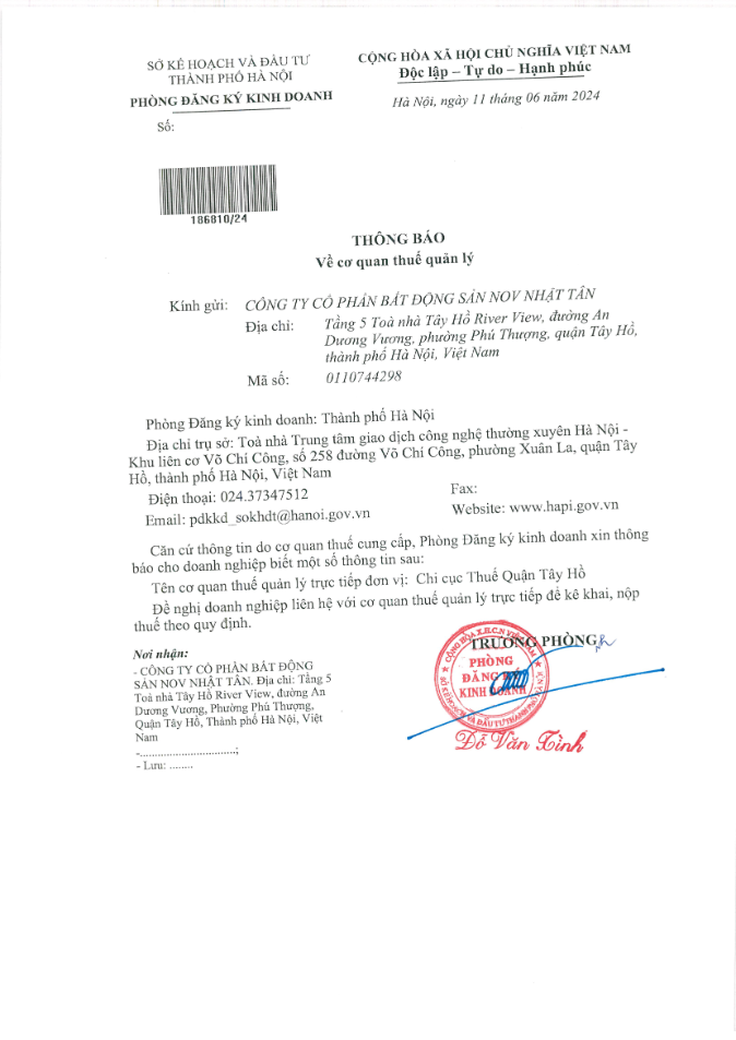 - Tên công ty: CÔNG TY CỔ PHẦN BẤT ĐỘNG SẢN NOV NHẬT TÂN