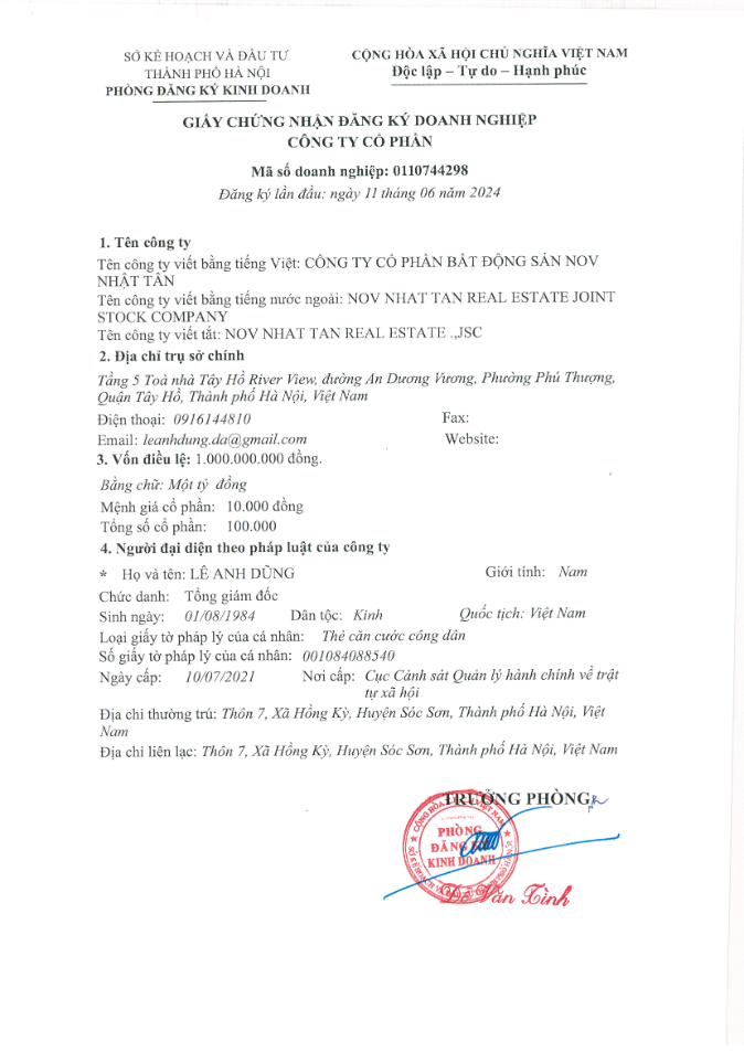 - Tên công ty: CÔNG TY CỔ PHẦN BẤT ĐỘNG SẢN NOV NHẬT TÂN